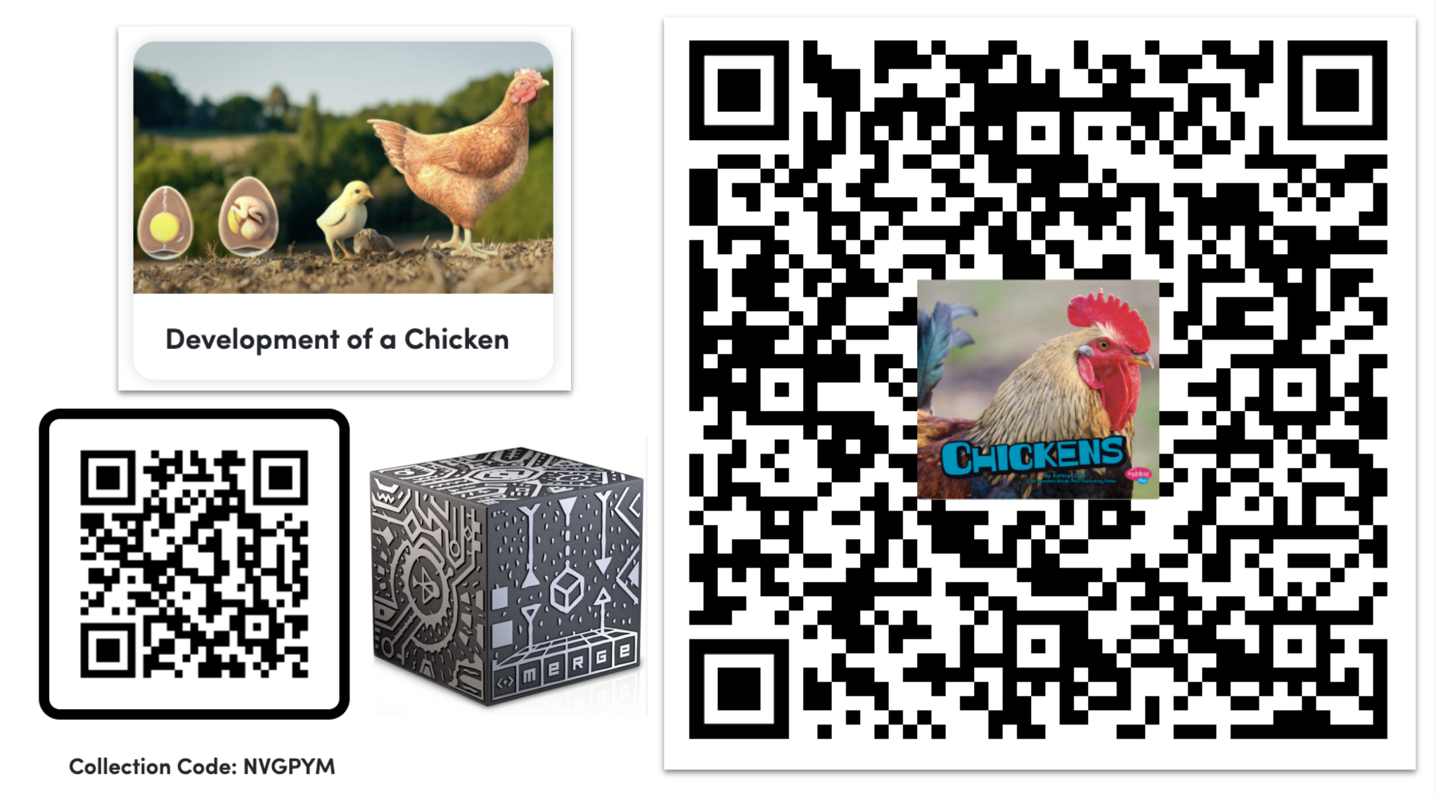 The "Development of a Chicken" collection in the Merge Object Viewer app allows learners to examine every stage of a chick’s growth from Day 1 to hatching around Day 21. Teachers can use the collection code NVGPYM or tap this link to instantly bring the chick's entire developmental timeline into augmented reality.
